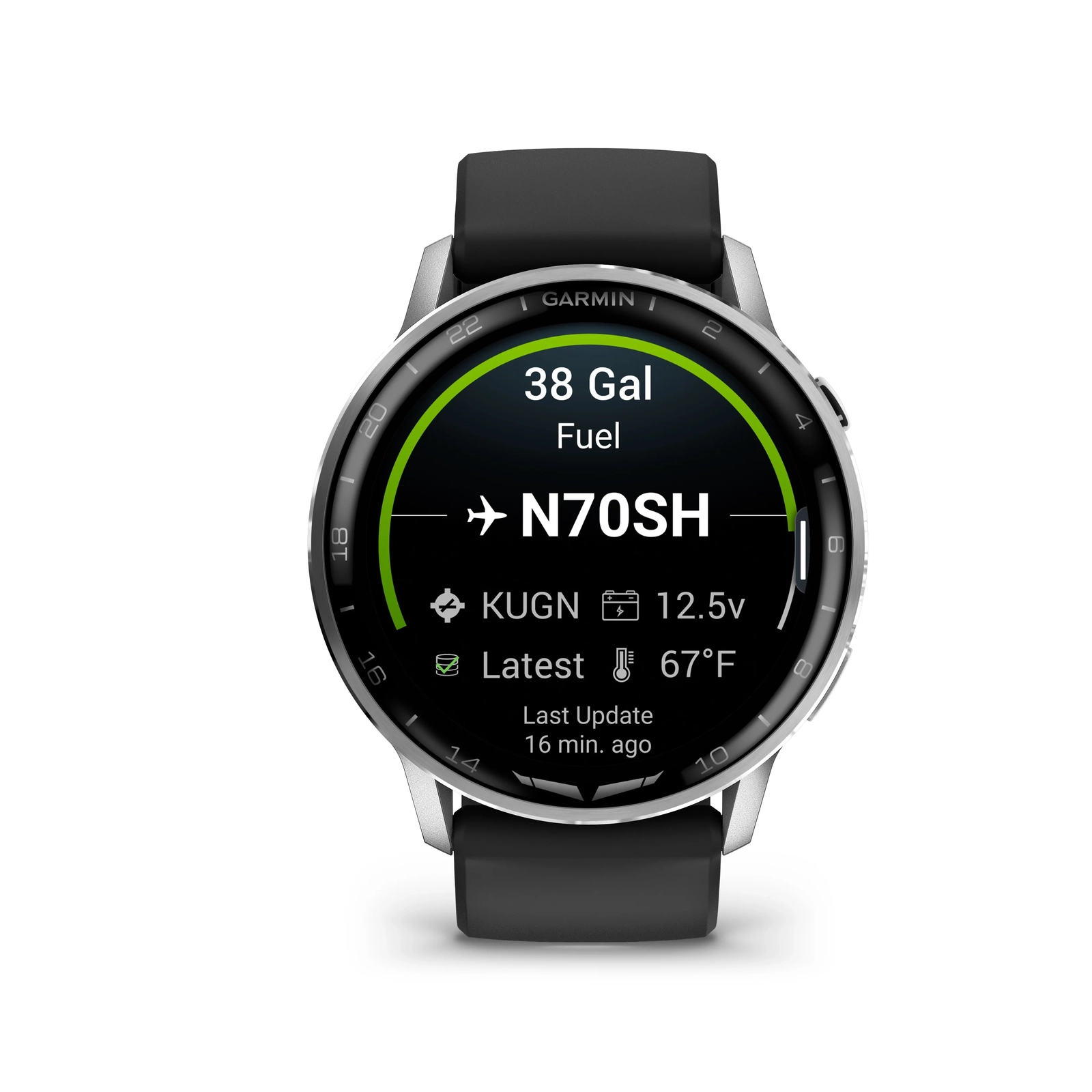 - On-device voice commands: Use voice commands to easily set a timer, start an activity and more. Additionally, pilots can use this feature for aviation specific commands such as “Start Fly activity,” “Direct to,” and “Show me the METAR.”