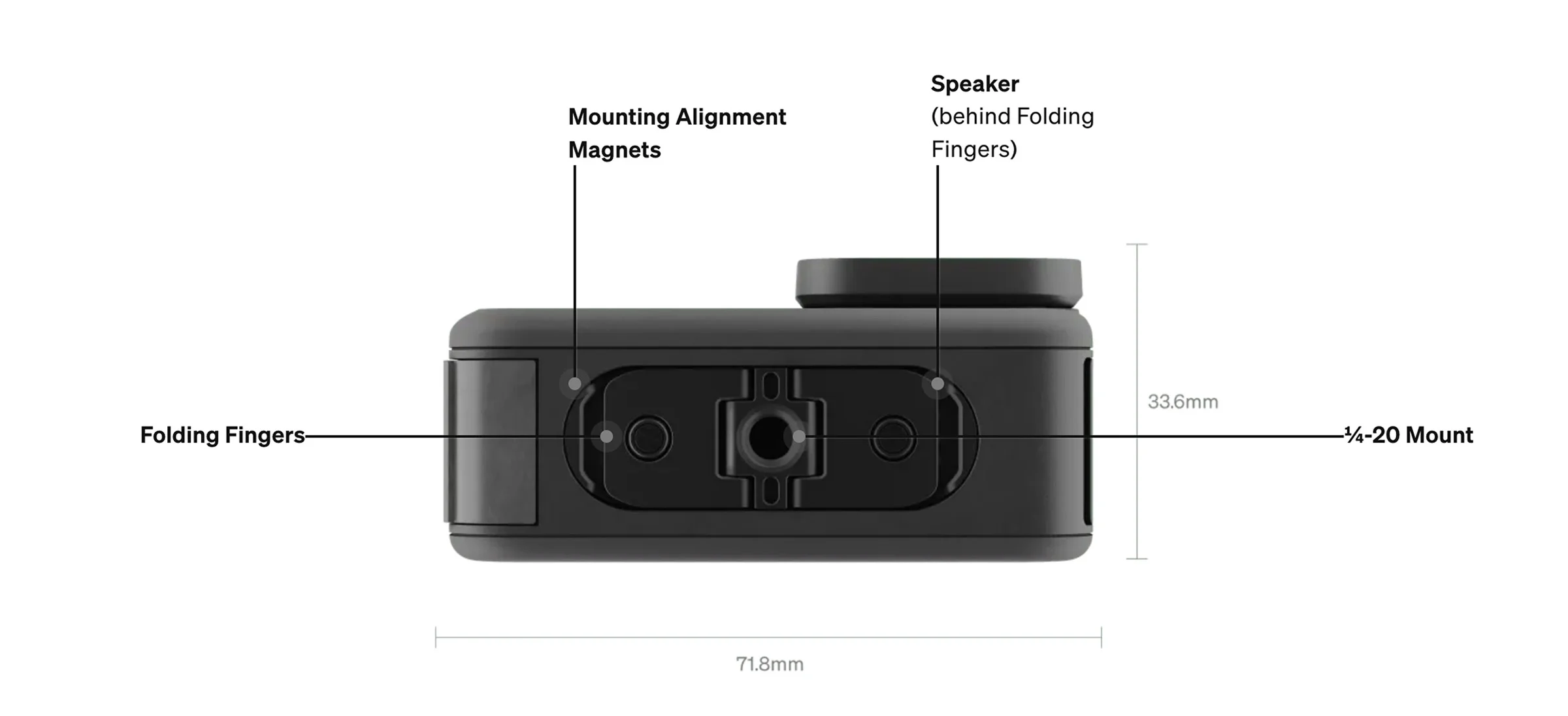 HERO13 Black is compatible with Magnetic Latch Mounts. There are magnets near the camera’s built-in fingers that align with Magnetic Latch Mounts (sold separately) making it fast and easy to click your favorite mounts into place — and they release with a quick pinch.