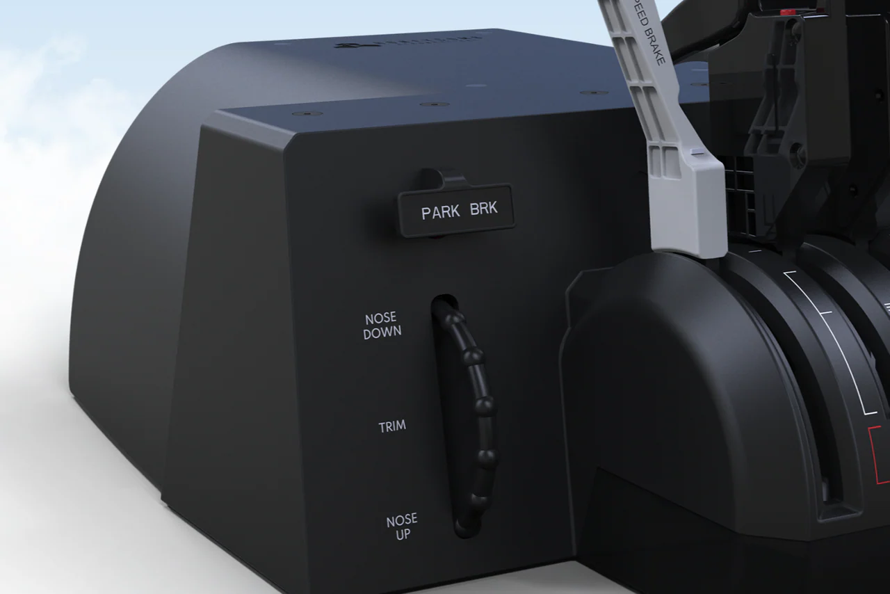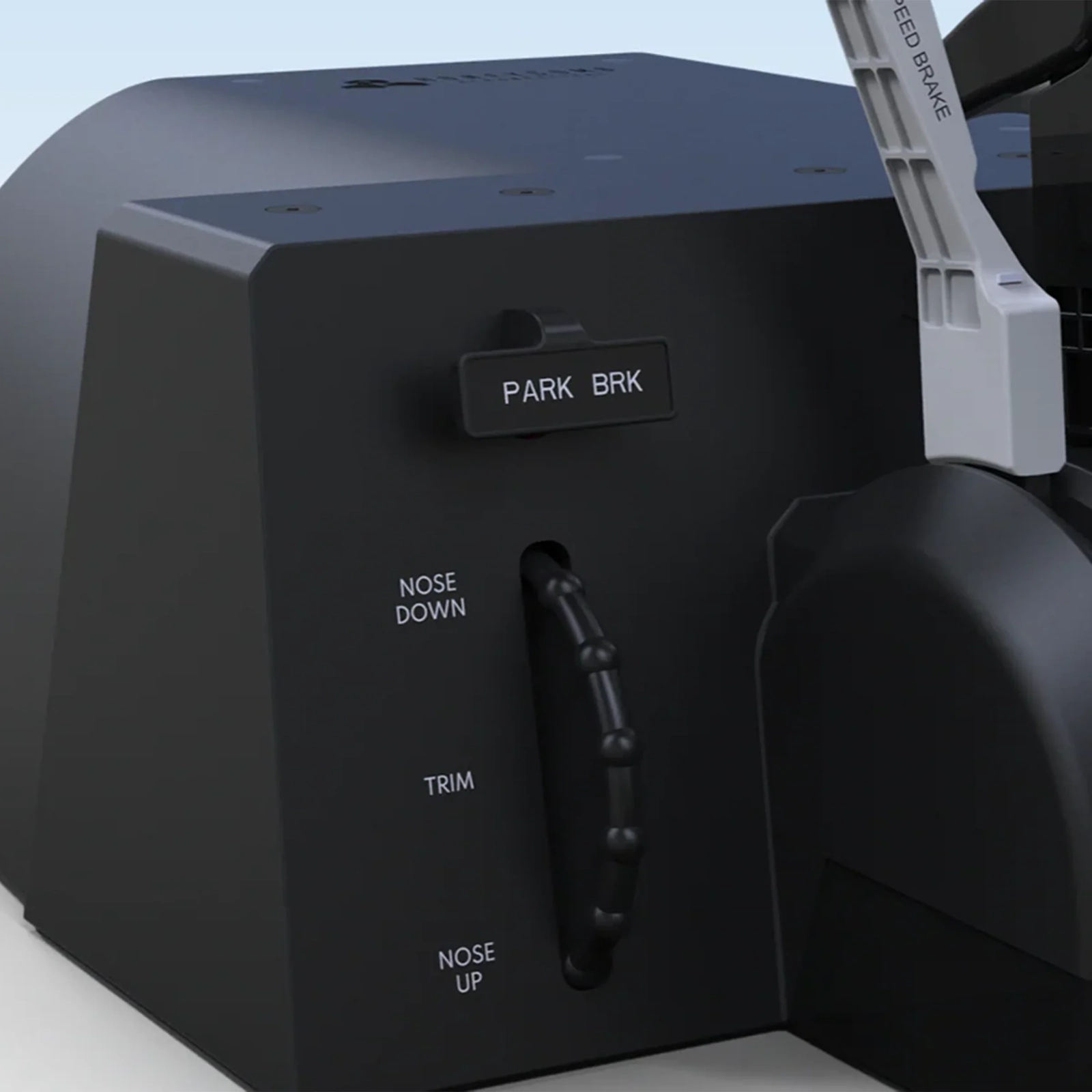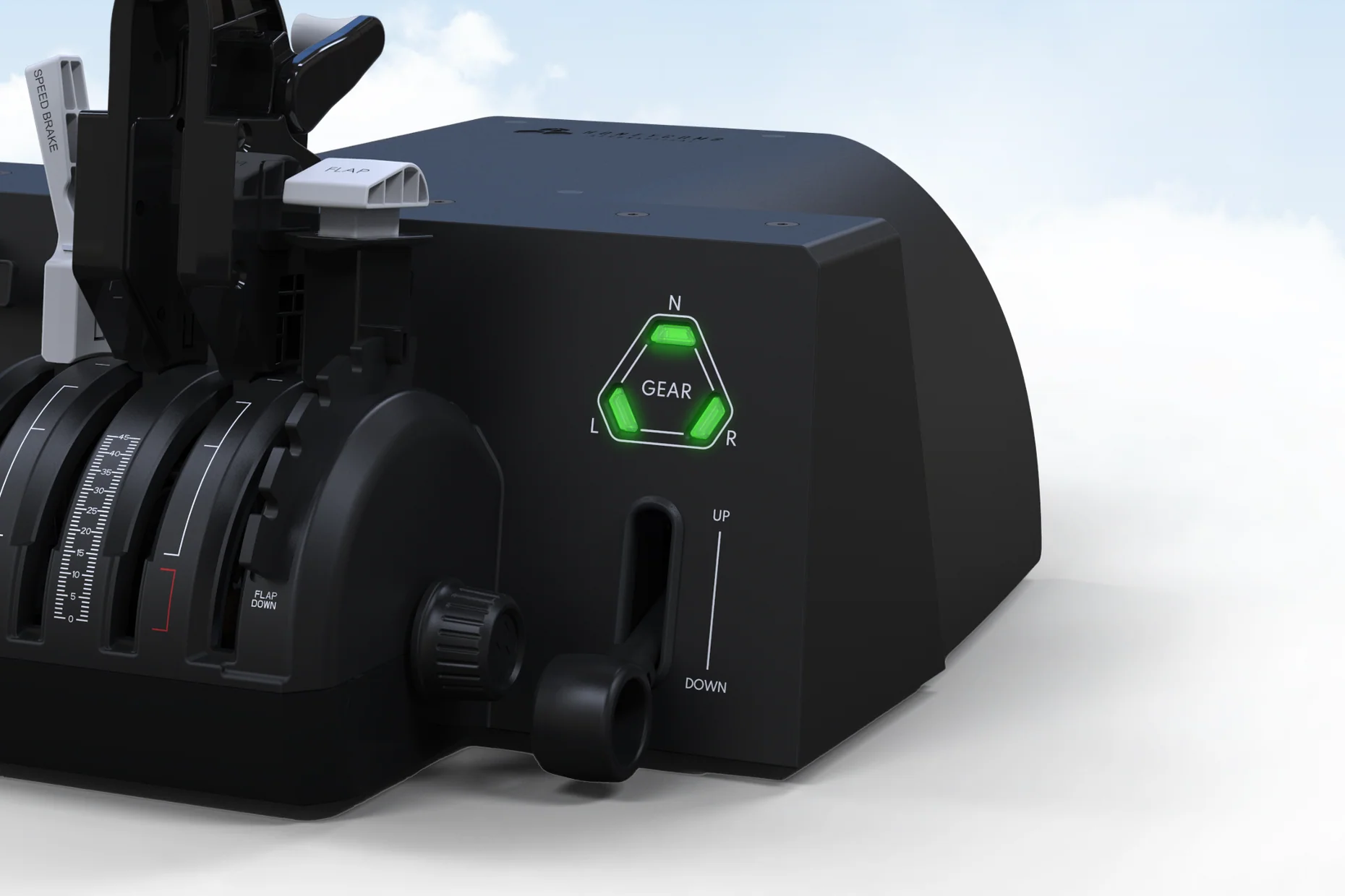 Built-in, low-profile trim wheel for superior fine-tuning. Integrated landing gear lever and LED status indicator light for immersive take-off and landing.