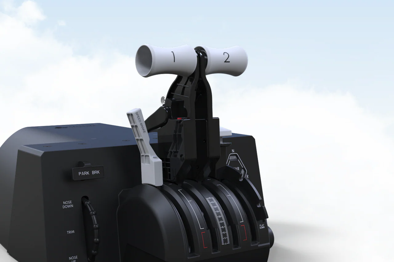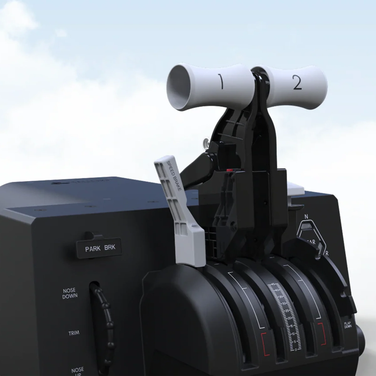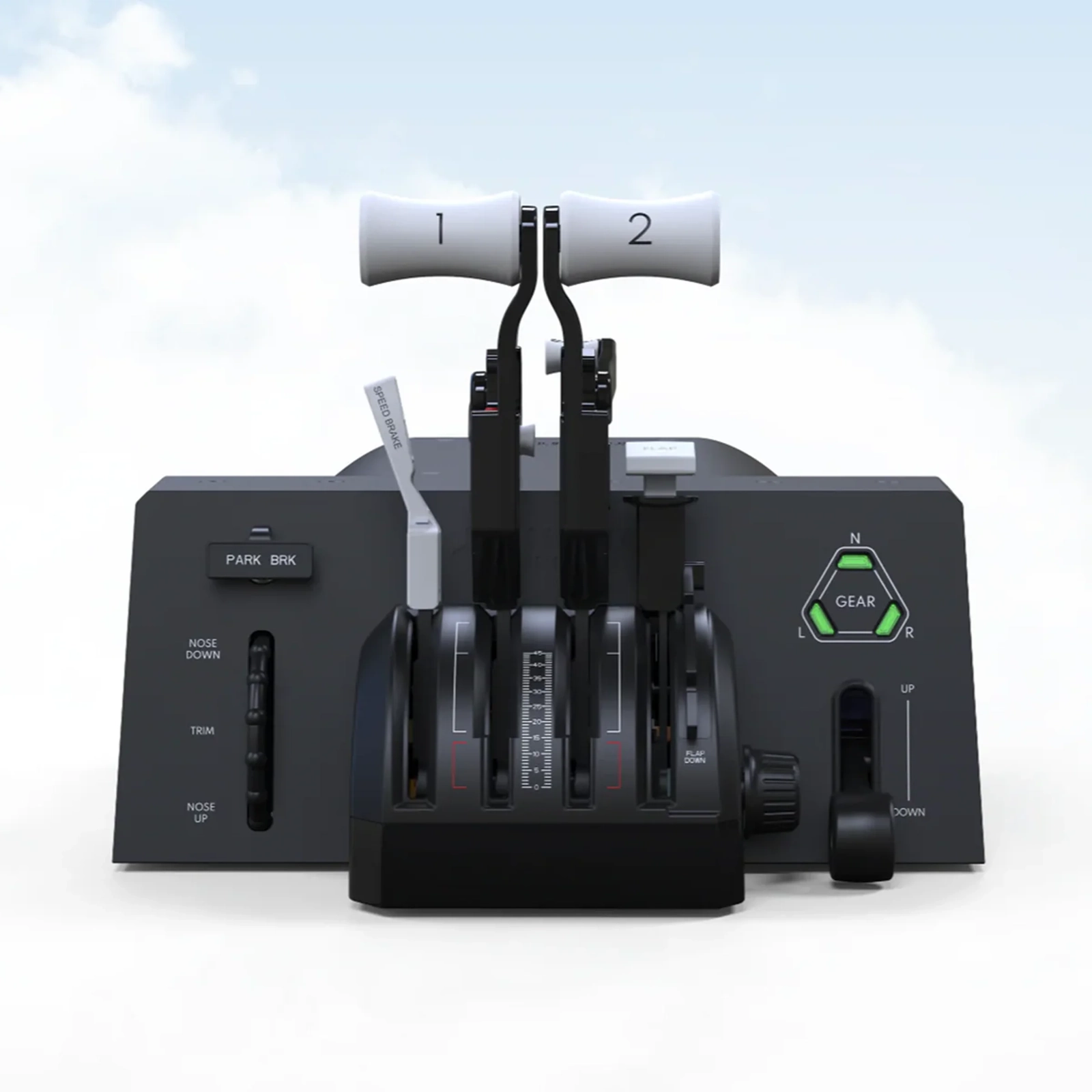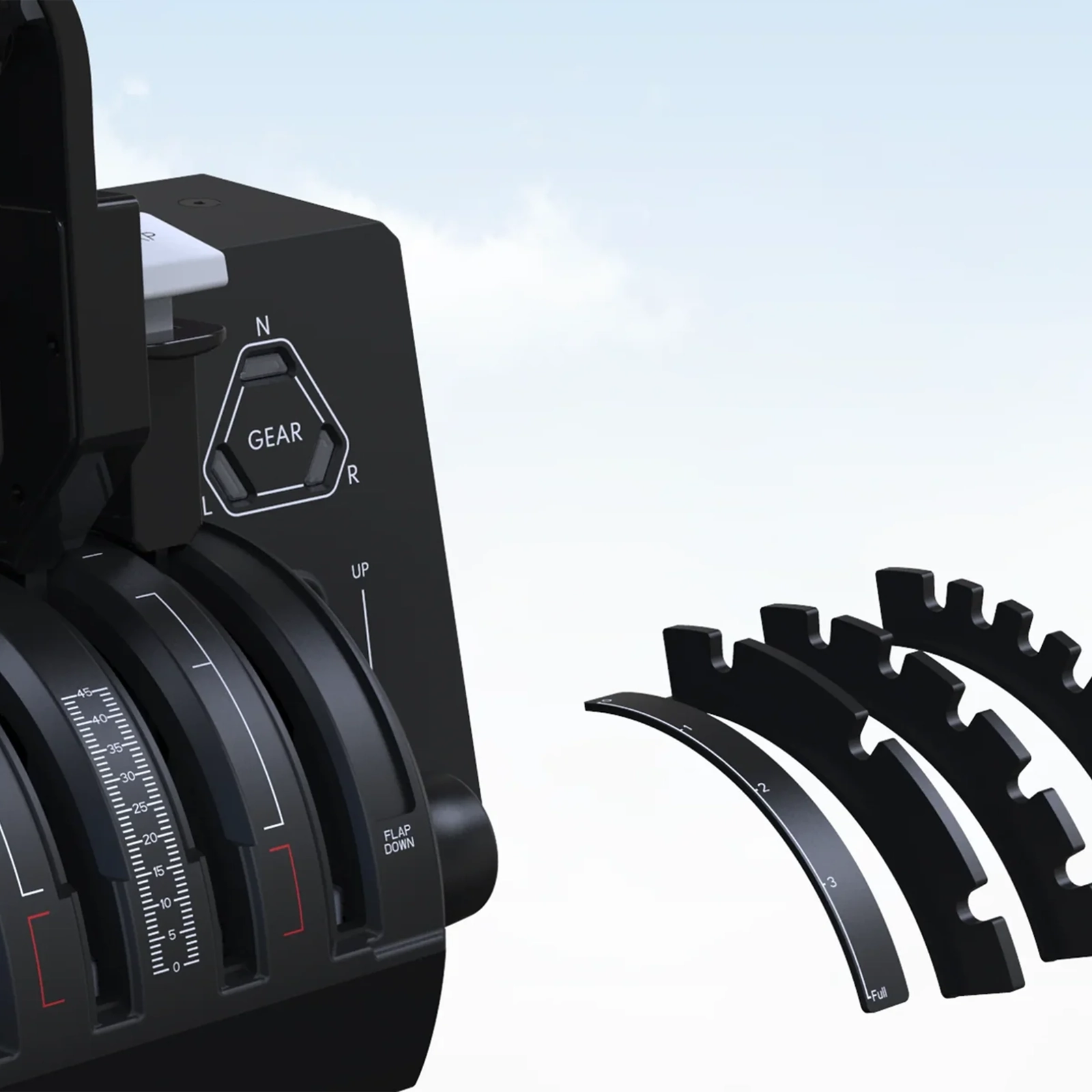 Built-in, low-profile trim wheel for superior fine-tuning. Integrated landing gear lever and LED status indicator light for immersive take-off and landing.